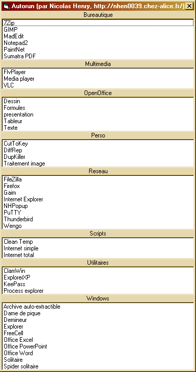 | Autorun | Programme permettant de gerer les autoruns. Parseur XML integre. |  |  |  | | 02/05/2007 | 14/04/2007 |
